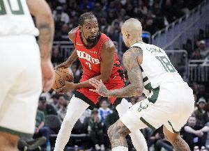 阿门、申京、杜兰特客串“兼职控卫”的效果并不好,雄鹿同样和火箭上身体、拼强度,消耗杜兰特和申京。