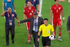 最后马宁在亚足联安保人员的护送下离场。