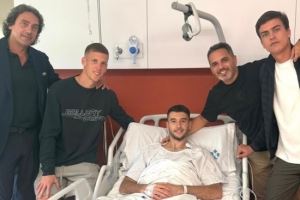 体育资讯9月28日讯 《世界体育报》报道,奥尔莫前往病房探望手术的队友霍安-加西亚。